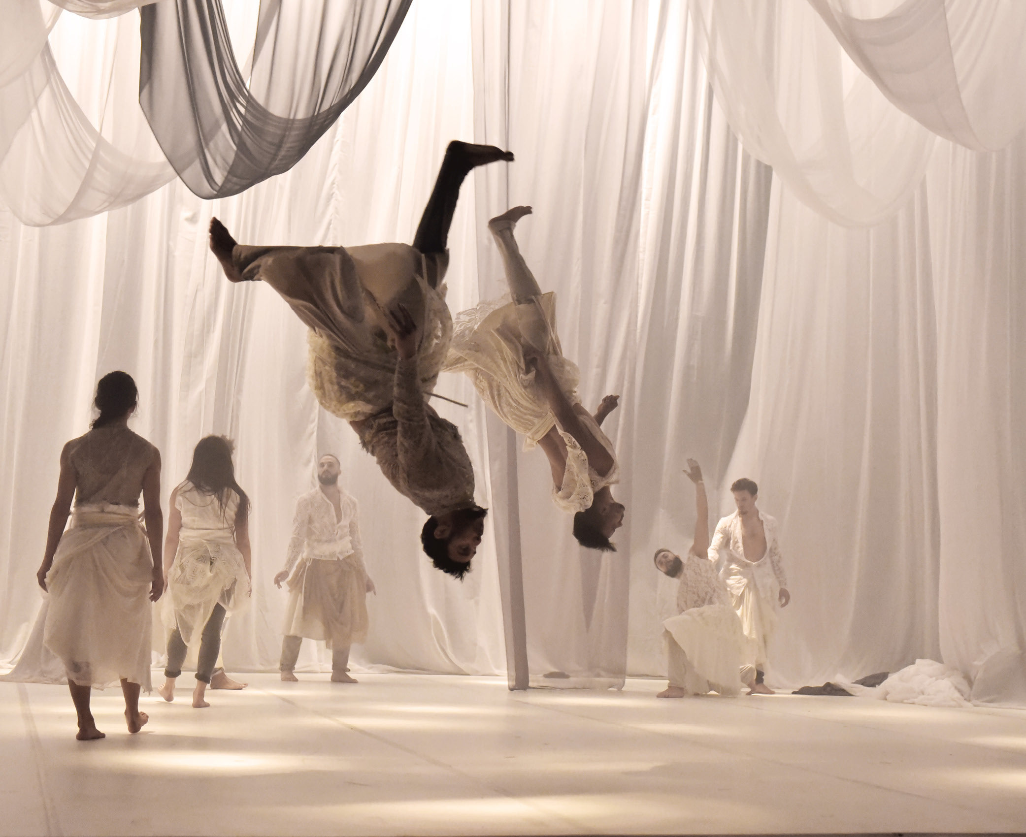 Grazie al virtuosismo dei suoi dodici danzatori e ad una coreografia vibrante questo lavoro disegna un ponte tra Oriente e Occidente, tra Francia e Algeria, come un momento sospeso, ai margini del sacro. L’avventura di Hervé Koubi con Ce que le jour doit à la nuit ha una lunga storia che inizia nel 2009 con un primo studio El Din (2010), una performance aperta a dodici ballerini. Ideato da un coreografo francese nato da genitori algerini, Ce que le jour doit à la nuit affonda le sue radici nell’attività di rielaborazione della memoria. Tappa fondamentale della vita, lo spettacolo coincide con una presa di coscienza tardiva: quella delle origini. Il momento in cui il coreografo inizia a sentire fisicamente, con il corpo, ciò che aveva sempre saputo in maniera astratta: le sue origini algerine, con l’infinita curiosità implicita in una simile scoperta. In questa pièce sensibile e sensuale ad un tempo, Hervé Koubi esplora attraverso la danza, tra fantasia e realtà, la propria storia e i suoi legami conl’Oriente.