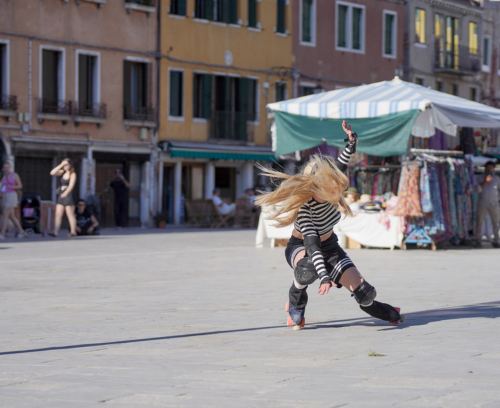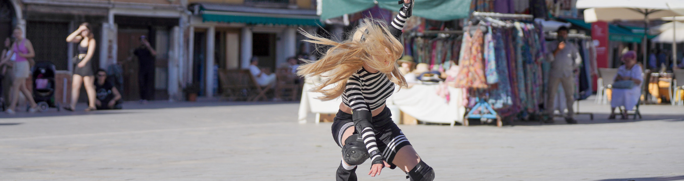 A girl on roller skates trains while filming her performance live. But something happens: the sound of gunshots invades the scene, her body falls, she is injured. The street thus becomes the theatre of a test of endurance that is both physical and existential, of the drama of life in all the tragic banality of a compulsion to repeat.